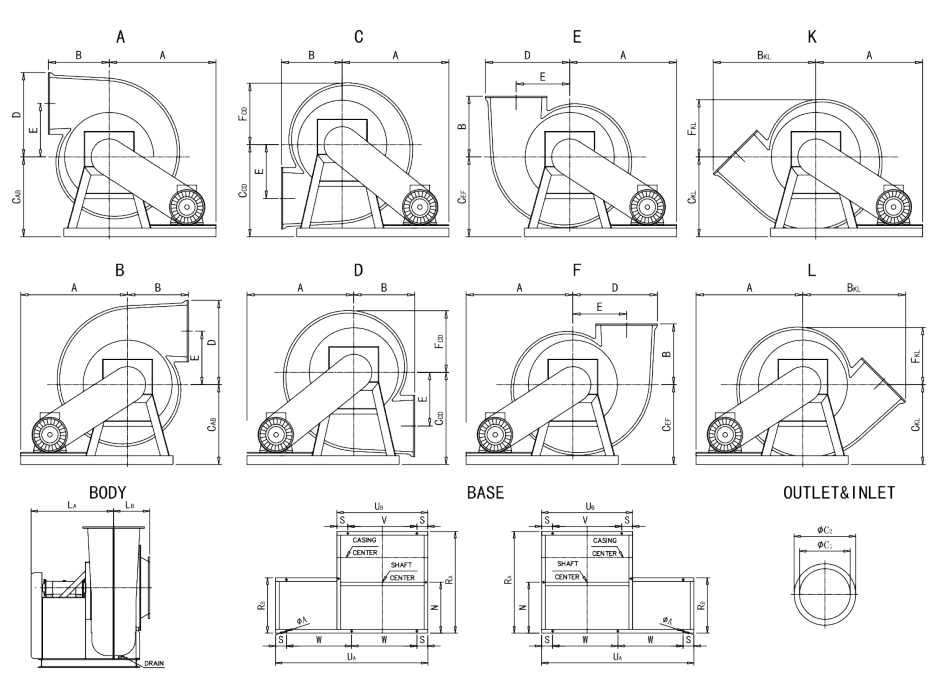 FRP製耐食防爆ファン、FRP製耐食性難燃ファン、FRP製耐食性高温ファン(80℃未満)、FRP製耐酸・耐アルカリ・耐有機溶剤ファン(特殊溶剤を除く)、FRP製耐クロム酸ファン、FRP製耐フッ酸ファン、FRP製低騒音防音筐体ファンなど